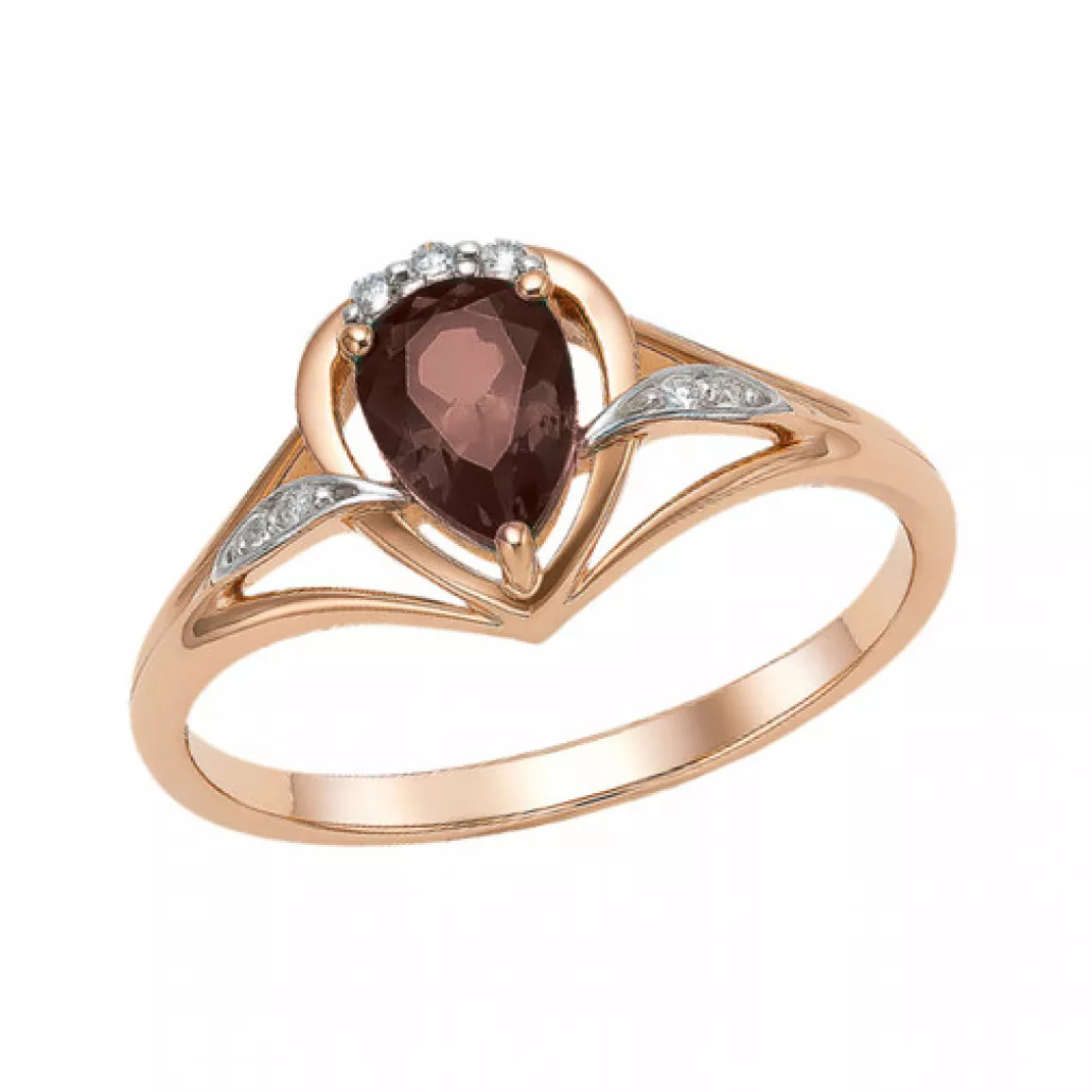 - Кольцо с гранатом и фианитом из золота