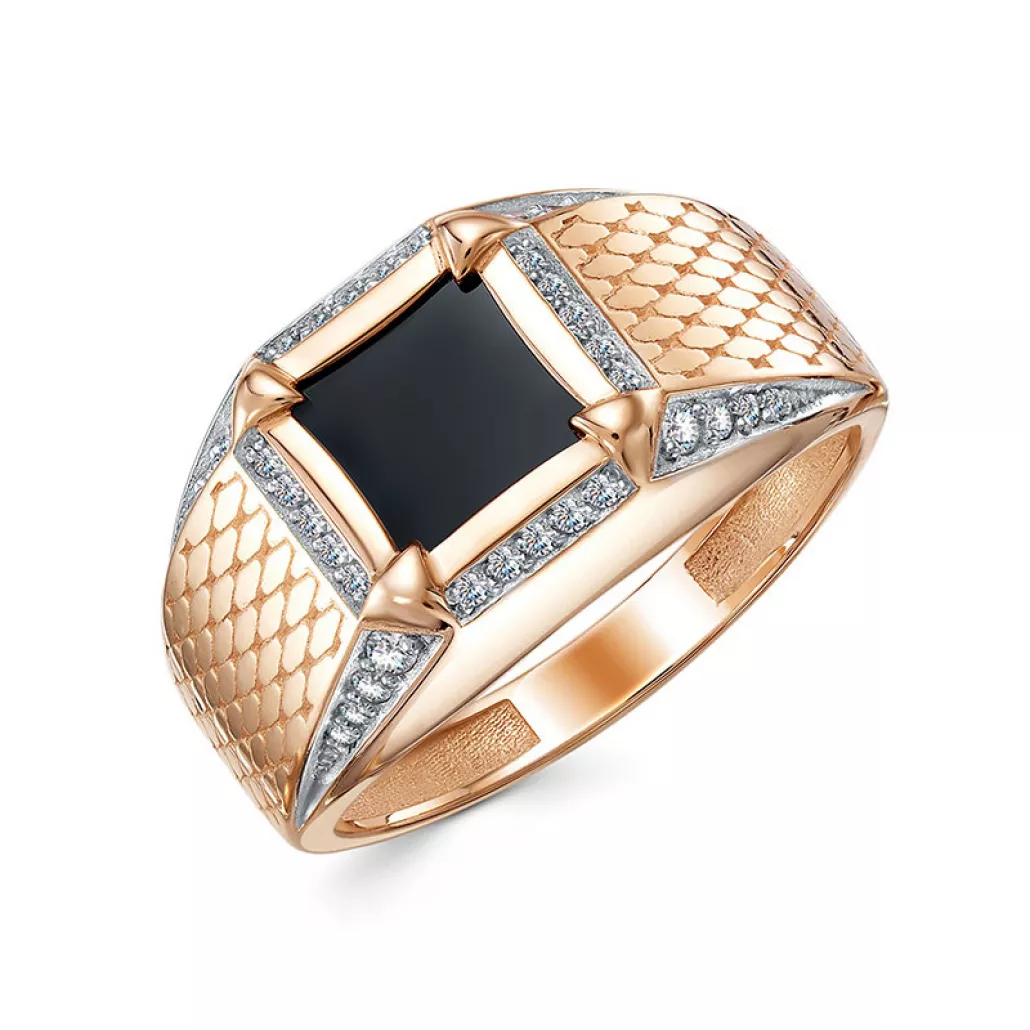 - Кольцо-печатка с ониксом и фианитом из золота