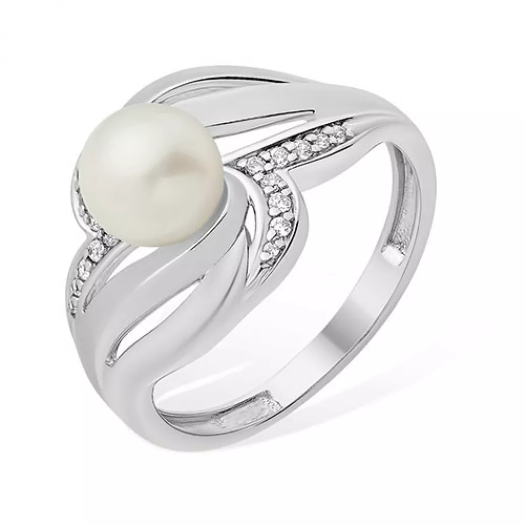 - Кольцо с жемчугом и фианитом из серебра
