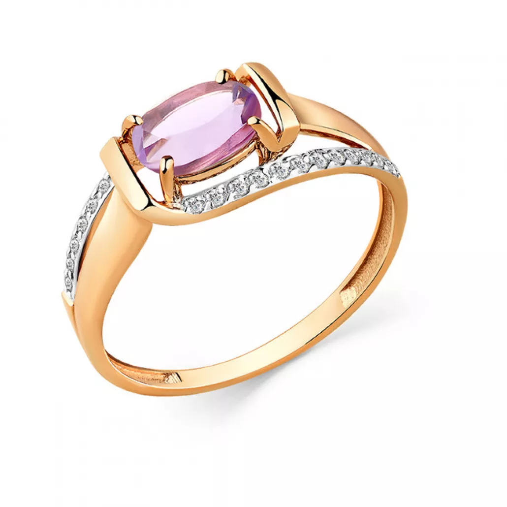 - Кольцо с аметистом и фианитом из золота