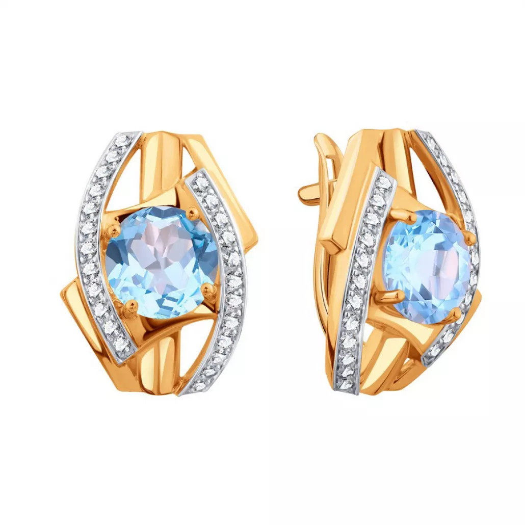 - Серьги с топазом и фианитом из золота
